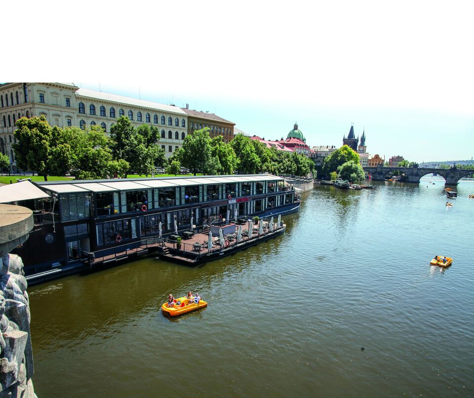 Ein unvergesslicher Abend mit Tisch direkt am Moldauufer beinahe auf Augenhöhe des Wasserspiegels lässt sich im Kampa Park erleben. Direkt am Fuße der Karlsbrücke gelegen, überzeugt das beinahe wie ein überdimensionales Hausboot anmutende Etablissement durch eine auch im Michelin Gastroführer gelobte Küche, aufmerksames Servicepersonal und ein auf starke Publikumsresonanz ausgelegte Großzügigkeit. Hier überkommt den Gast an lauschigen Sommerabenden mehr als nur ein Hauch von Mittelmeerflair. Die von exquisiten Meeresfrüchten geprägte Küche, die auch eine reichliche Auswahl an einheimischen und internationalen Rezepten zu bieten hat, trägt wesentlich dazu bei. Das Preisniveau ist gehoben, aber der Qualität durchaus angemessen.