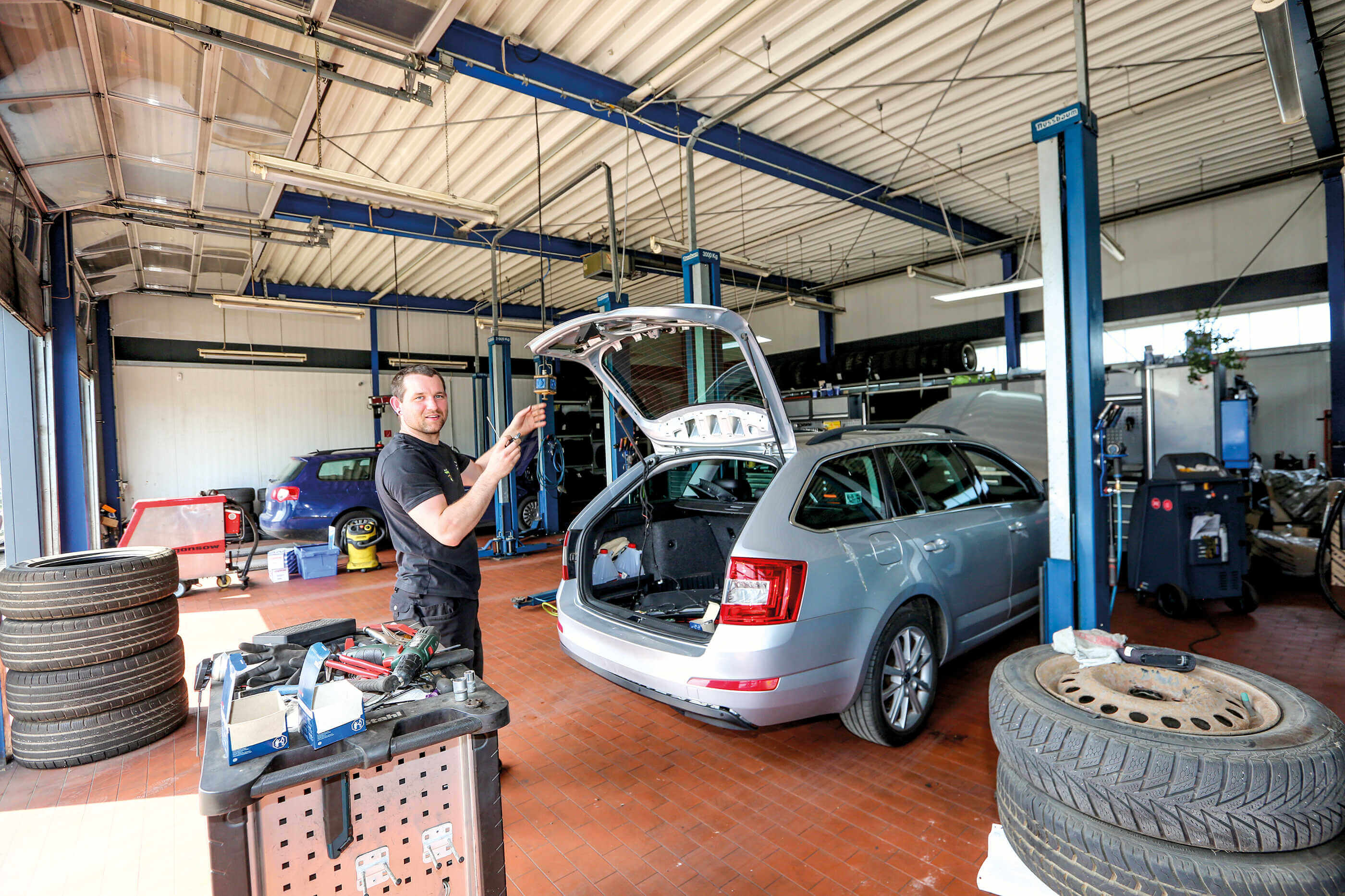 Wir bemühen uns hier um maximale Transparenz. Das beginnt schon damit, dass wir, soweit es die Witterung zulässt, die Tore offen lassen, damit der Kunde sich selbst einen persönlichen Eindruck vom gesamten Umfeld verschaffen kann. Schließlich möchte er sich sicher sein, dass er sein Fahrzeug einer seriösen Fachwerkstatt überlässt.