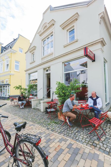 Am Sandtorhafen trifft man sich bei warmem Wetter auf den Marco-Polo- und Magellan-Terrassen. Hamburg bietet eine unglaubliche Auswahl an guten Kaffeeröstereien und Teestuben. Empfehlenswerte Erlebnisgastronomie findet man u.a.im Kaffeemuseum Burg (St.-Annen-Ufer 2) einerseits oder im Teestübchen Meßmer Momentum (Am Kaiserkai 10) andererseits. Beide bieten Verkostungen, Lesungen oder Workshops an, die man auch für Gruppen oder Firmen buchen kann. Das Schöne an der HafenCity ist: Man muss hier nur ein paar Schritte gehen und den Kopf ein paar Grad drehen, schon entdeckt man neue Perspektiven und Sehenswürdigkeiten: